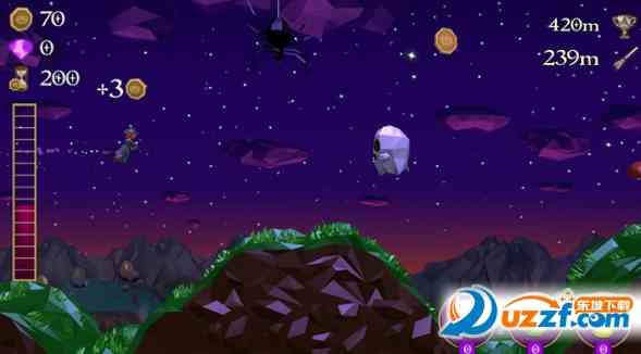 这是一款飞行酷跑的游戏, 以魔法为背景,玩家需要扮演一位骑着扫把的女巫,在夜空中进行飞行,收集宝石。游戏中会一直有各种怪物偷袭, 挽救一下。 漂浮的幽灵、神秘的蜘蛛等,你需要通过晃动手机躲过它们的袭击,收集更多的宝石,获得更高的得分!