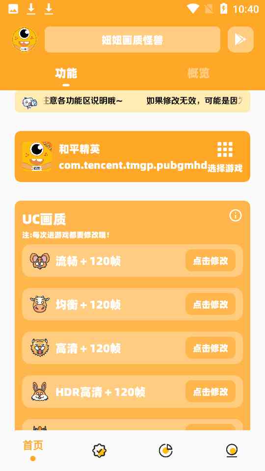 画质怪兽v2.5, 欢迎使用画质怪兽,使用前请注意各功能区说明,如果有黑屏闪退等情况,请点击恢复画质,也可能是您所修改的与您的手机配置相差过大,请适当修改相对数值,冲鸭!。