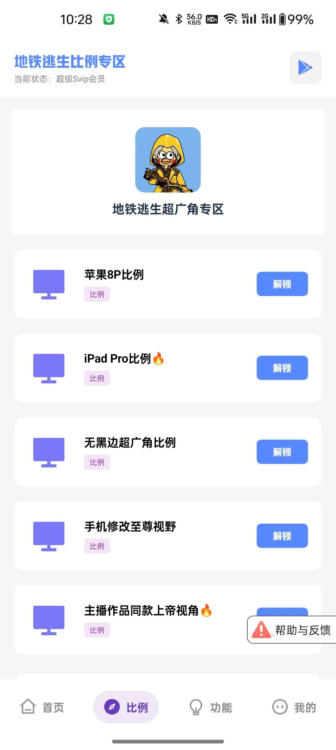 4、点击比例解锁,即可修改游戏视野。