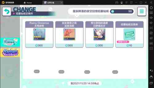 10张贴纸→交换1张「交换券」,一期卡池最多交换10张。