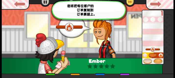 2、老爹汉堡中国店开张了~但是身为新手的厨师的你,必须一步一步地学习。