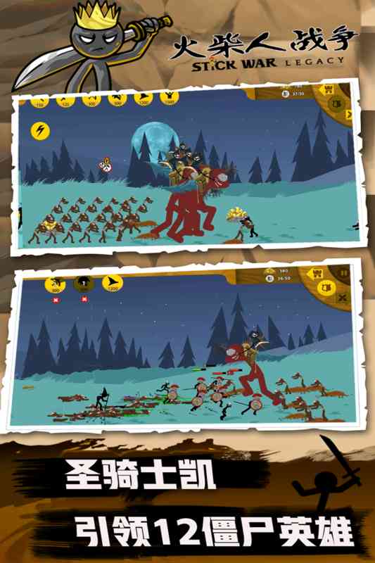 第十二关:到头来对战,这时敌方用的是熔岩皮肤,十分强悍,前期两排剑士一排弓箭手,7个矿工发展经济后期养两巨人开路,两排弓箭手掩护,四排剑士拆雕像,敌方雕像没血后会变出一个巨人, 翻旧账。 这时赶紧撤退,不要跟他硬刚,主要原因是他伤害非常高。这时拿出对付巨人的套路,不过千万不要皮。打败他之后就会按照剧情发展,跟着剧情走就好了。