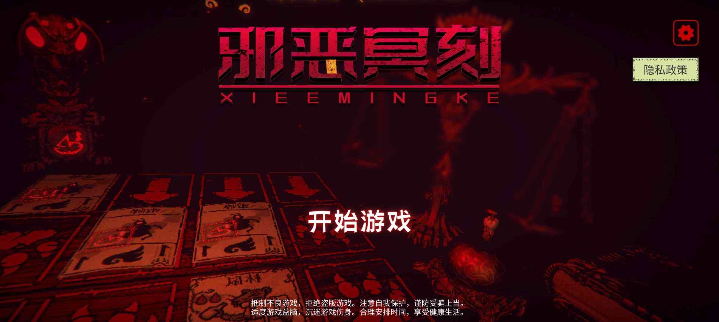 《邪恶冥刻》是一部墨黑色卡片主题的冒险史诗, 融合了Roguelike牌组构建、密室逃脱以及心理恐怖元素, 功力不足。 为玩家献上一杯血腥的冰沙奶昔。比玩法更黑暗的,是卡牌上冥刻的内容。