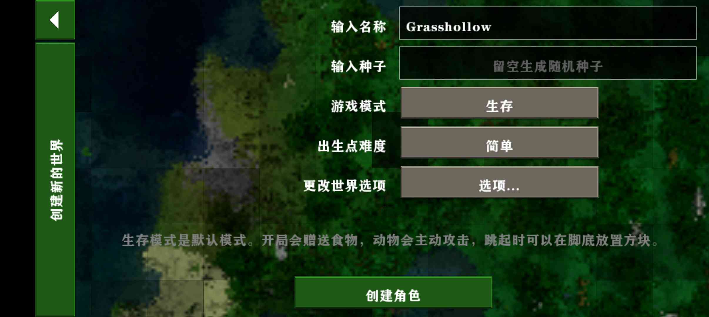 2、 点击游戏后我们来到创建角色界面接着输入名称和选择游戏模式和难度。
