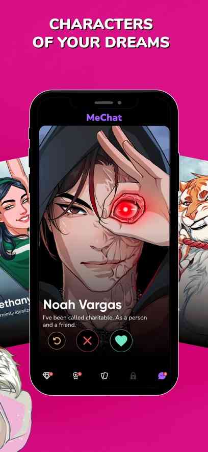 MeChat爱情秘诀,欢迎使用全新的虚拟约会体验来玩游戏!这里有数十个游戏角色等你来攻略, 不同的角色会有不一样的支线攻略,跟着主角一起获得角色的CG,开始恋爱吧。