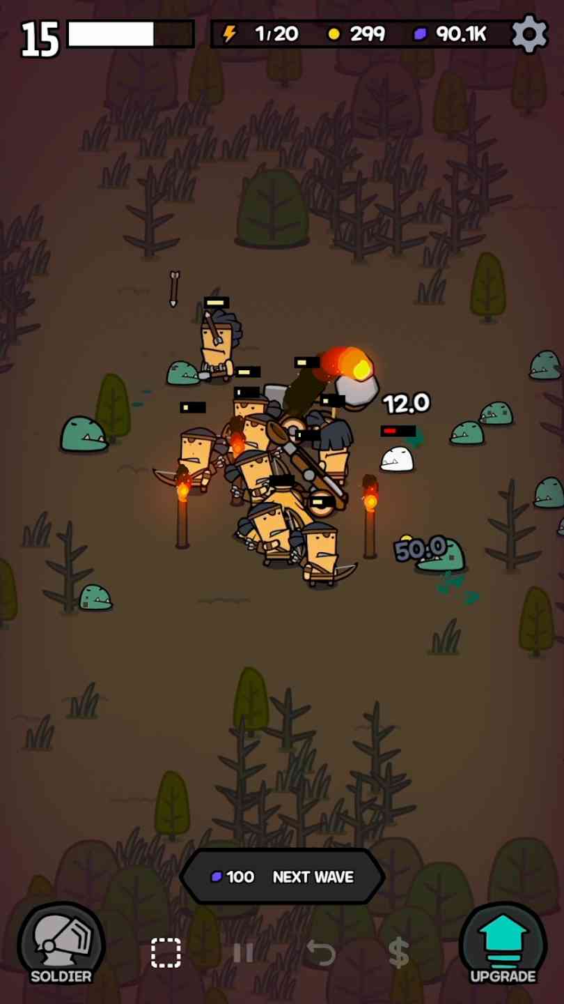 3、 当有选定的士兵时按暂停按钮将使他们留在原地并攻击其射程内的僵尸, 被割韭菜了。 按播放按钮将允许他们 自由移动。