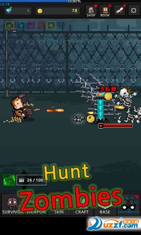 盘它。 成长幸存者是PixelStar Games开发的一款动作射击类游戏。点击屏幕杀死僵尸,收集材料制作武器。按下屏幕,就可以开火,根据等级加强装备,武器生产和加固让游戏十分有趣!