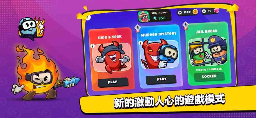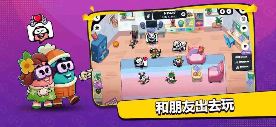 《Silly皇室我们之间的恶魔》的故事发生在一个充满神秘色彩的鬼屋或牢房中。在这里你将与12名玩家展开激烈的较量。你可以创建自己独特的Silly头像, 选择扮演“Silly”或“魔鬼”,或是在新颖的“越狱”模式中扮演“捕快”或“匪徒”。支持语音聊天和emoji表情符号,让你在游戏中畅所欲言,享受沟通的乐趣,太虐了。。