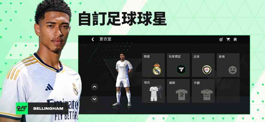 从球衣到球鞋,自定义外观,还包括俱乐部队徽、足球、球衣、球衣风格和号码