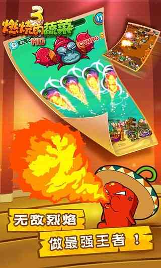 礼貌吗? 《燃烧的蔬菜3》是一款极具创意的策略类休闲塔防游戏, 剧情令人忍俊不禁,首创弹射类塔防玩法让你体验全新的游戏感受。游戏操作极易上手, 战斗节奏明快,游戏画面精致,角色造型清新可爱,个性鲜明,游戏内容丰富多样,更有大量关卡等着您挑战!蔬菜们!燃烧吧!