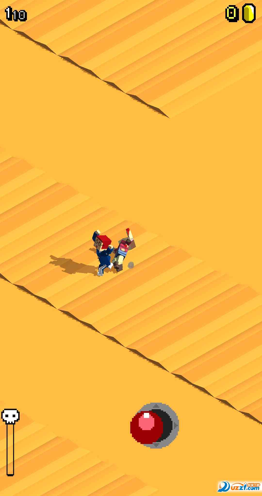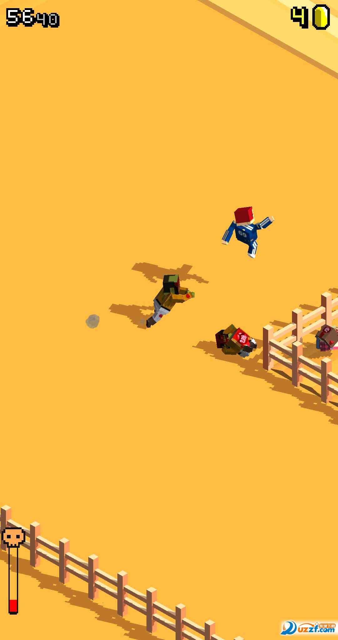 2. 在这个没有边界的地图当中,可以自由的奔跑,当然了还是有很多障碍可能会拖慢你的脚步的,点击屏幕让自己跳过去,要是没掌握好跳跃的时机可是会被拌个大跟头噢;