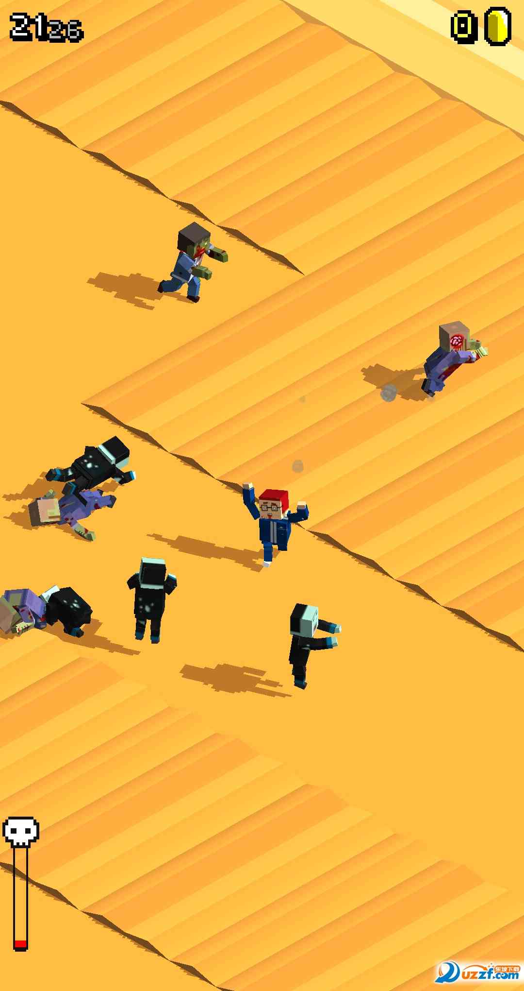 累并充实着。 好久没看到这么好玩的游戏了 魔性的玩法魔性的背景音乐,搭在一起早就了这个游戏完全不一样的乐趣。我们控制的方块头本来就够搞笑的了没想到不小心撞到障碍慢慢滑落和被绊倒在跳上翻滚的样子更加的搞笑。就算被僵尸抓住了也会忍不住再开一把的,好容易上瘾啊。