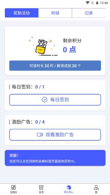 1、 通过每日签到,可以随机获取2-5积分,点击下方“我”进入页面点击今日签到即可。