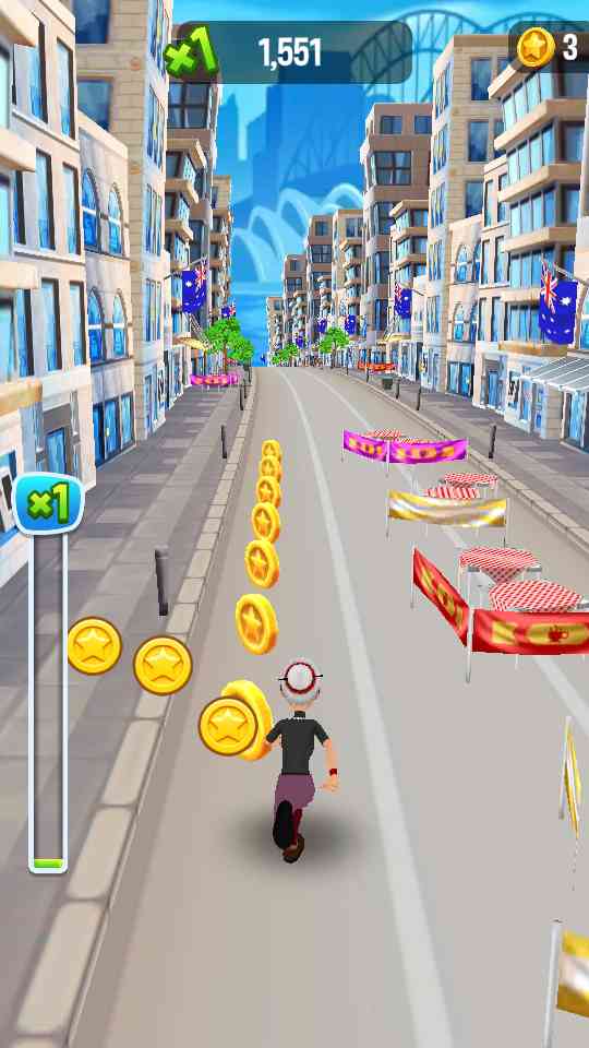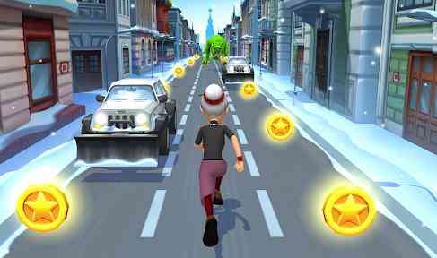 游戏中搜集的金币可以在商城中升级街道上随机出现的道具, 道具分为:减速,冲刺,无敌,金币加成,磁铁,2000m后金币翻倍。除此之外 玩家也可以购买一些主动使用的道具, 我爱我家。 比方说双连跳,复活,开始冲刺1000m,开始冲刺2500m。搜集更多的金币来购买道具, 从而获得更高的分数!
