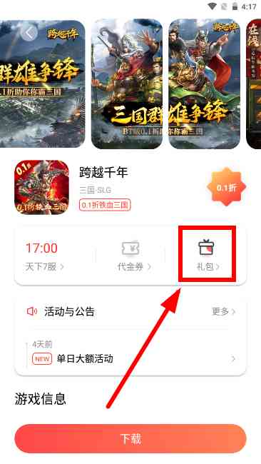 实际上... 2、 点击进入游戏详情界面找到礼包功能并打开,如下图所示,就能领取游戏礼包啦。