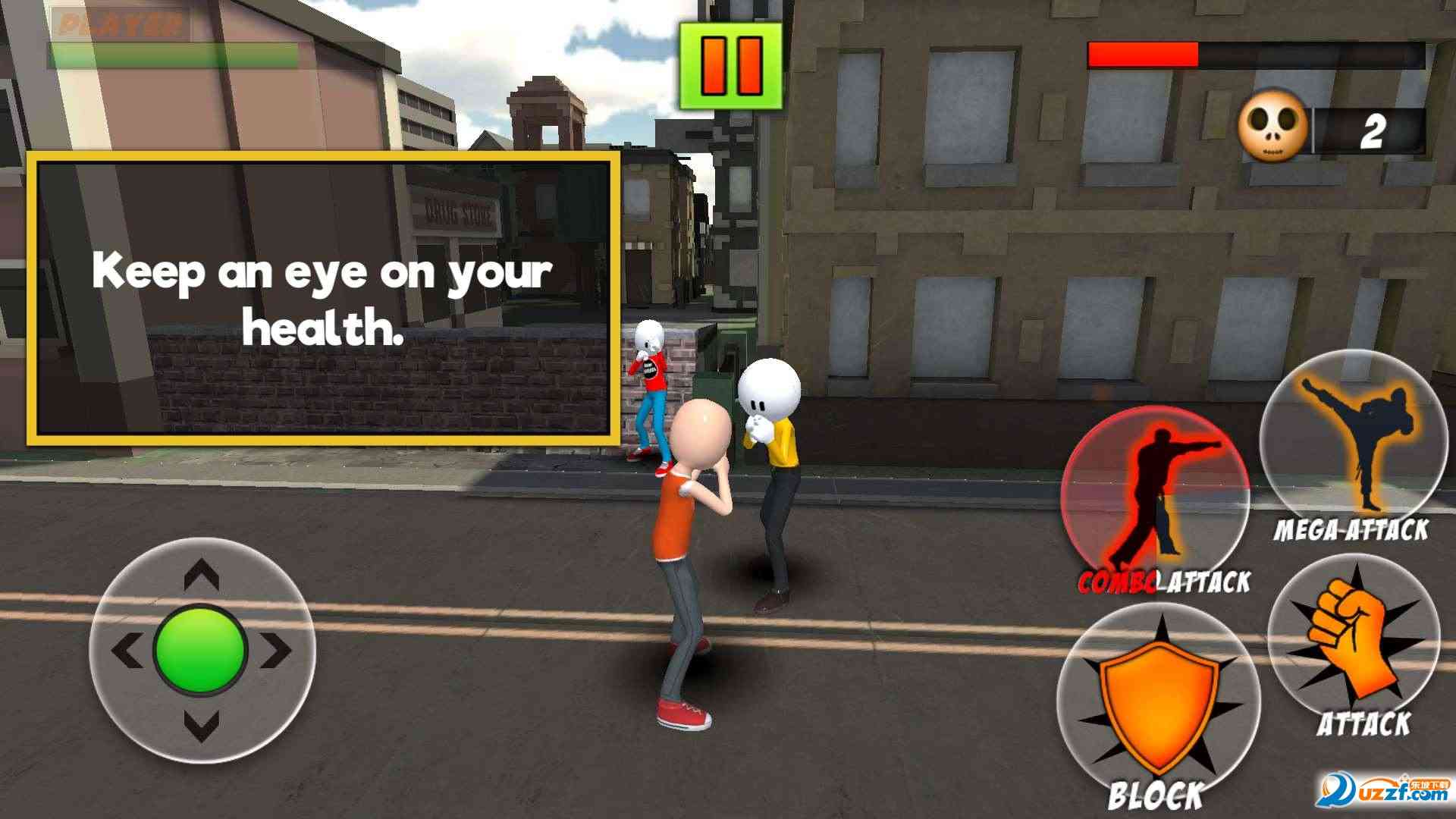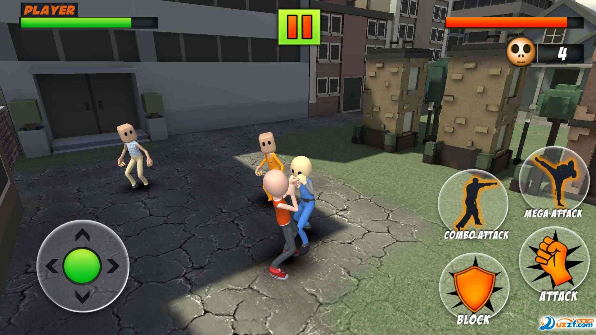 这是一款街头斗殴游戏,,人物造型可爱,主角很像一拳超人中的琦玉,打斗以传统动作配上连击与蓄力,操作起来非常流畅,打击感强,拥有多奇葩造型的角色,还可以捡取掉落的武器与血药!