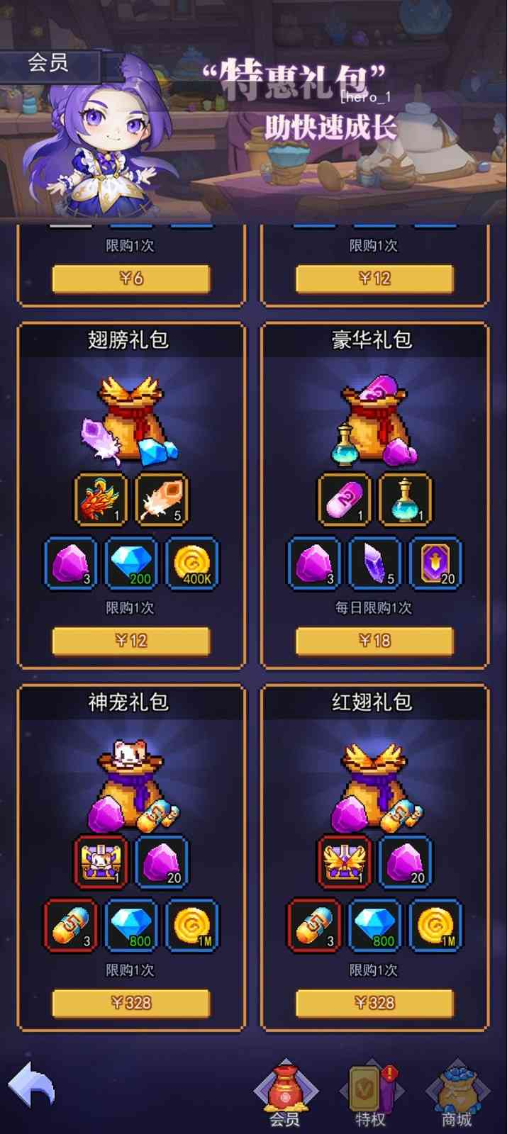 简单看了看各种礼包和付费