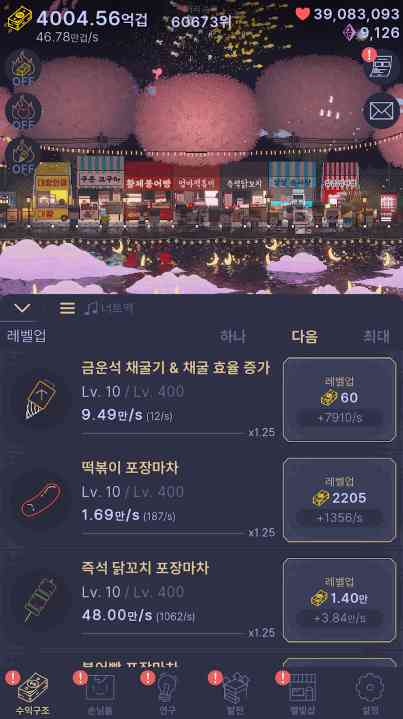 点击屏幕开采金陨石并设置摊位以进一步增加您的利润,搞起来。。