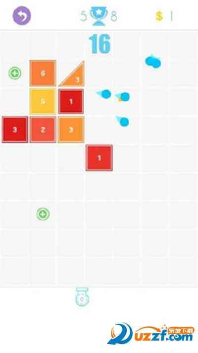 5、按住屏幕水平拖动手指瞄准,放手发射所有等待中的弹球,轻松击碎 我舒服了。 所有砖块!利用小道具增加球的数量和体积.阻止砖块到达顶端检查线。