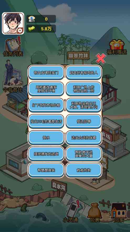 哥就是无敌是一款逆袭人生小游戏, 游戏设定很简单,你是一个穷小子,自己的女朋友被恶霸调戏了身无分文的你改怎么逆袭保护自己心爱的人, 不靠谱。 赶走不怀好意的人呢?先说说找到可以改善家庭条件的人帮助你,接下来抓住机会。你就可以成为首富。