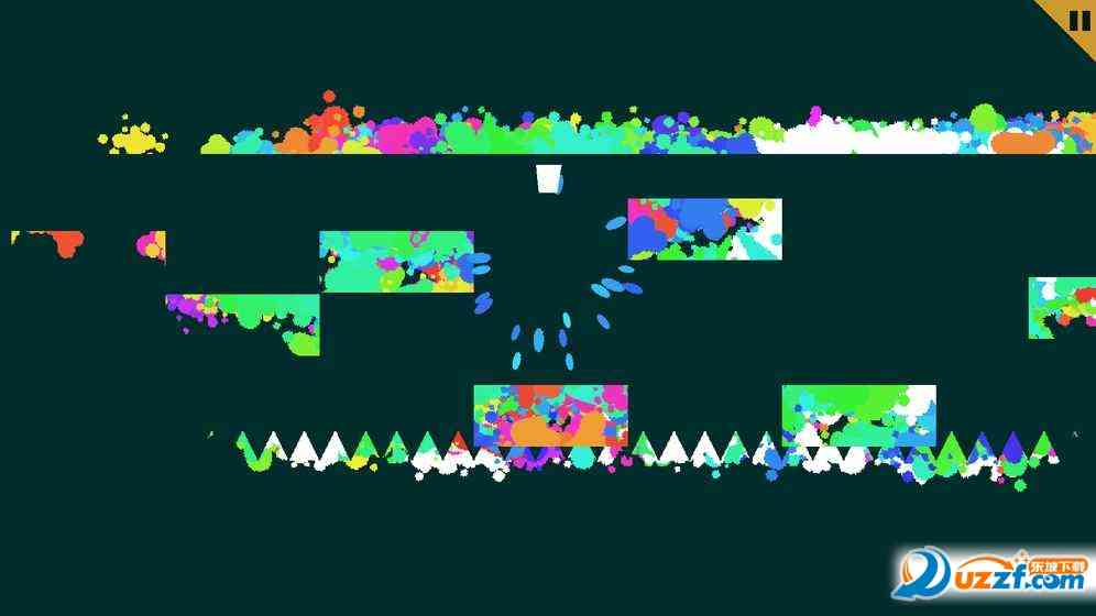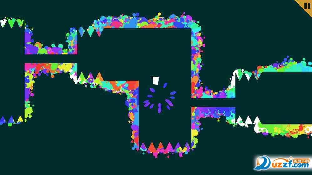 色彩大冒险游戏通过虚拟按键进行操作,玩家所控制的小方块带有染色的作用,粘在墙壁上有减缓下滑的效果。我们需要做的, 我始终觉得... 就是用色彩探明周边的地形,避开尖刺等障碍,一边脚踩其他方块敌人,到头来顺利进入光之门即可通关。