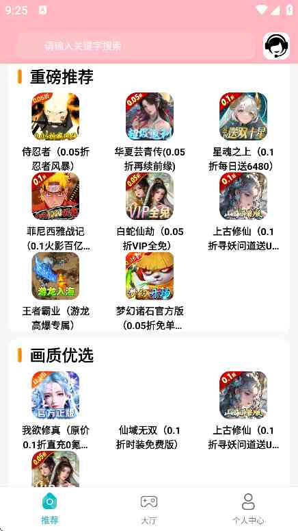 这款折扣丸手游助手还是比较好用的,这里游戏资源丰富,涵盖了仙侠、传奇、卡牌、回合、武侠、角色扮演、冒险、塔防、动作格斗等众多类型的游戏,无论你是喜欢紧张刺激的战斗,还是享受轻松休闲的娱乐,都能在这里找到心仪的游戏,而且每天会更新最新的游戏资源内容,让玩家第一时间玩到最新、最热的游戏,不用担心游戏荒,就这样吧...。