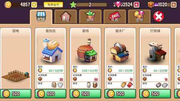大家需要注意店铺下面的标价哦,金钱不够的话就不能就暂时不能建造了。
