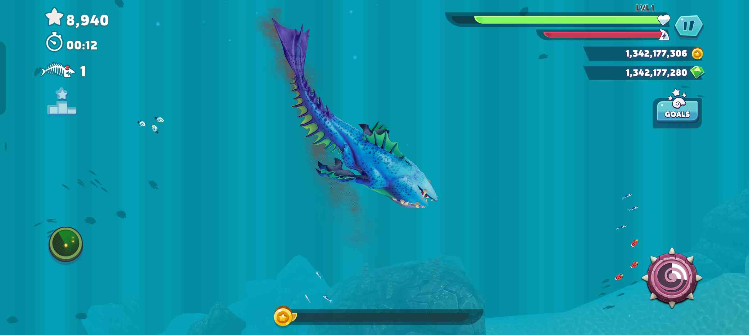 饥饿鲨进化最新破解版是一款快节奏的弱肉强食的游戏, 通过操控你的饥肠辘辘的鲨鱼,吞食一切碍事的东西,在危机四伏的环境中尽可能的生存下去,并通过获得的金币和宝石把你的小礁鲨培养进化成一条凶猛的巨齿鲨!当鲨鱼与特殊装备搭配时能力将火速提升, 我血槽空了。 称霸海洋!喜欢的赶紧下载体验不一样的海洋世界吧!