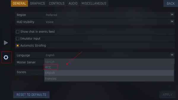 在主菜单中, 选择左侧齿轮图标,点击“language”,可选择中文,太治愈了。。