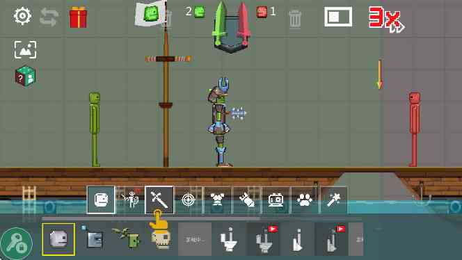试试水。 4、然后选择一个地图进入游戏。如图所示。下方是一些道具资源。