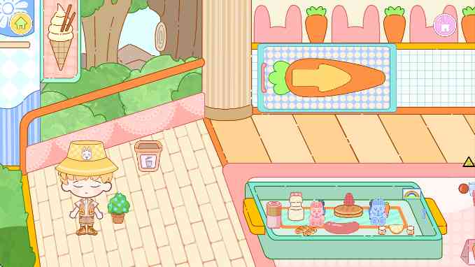 5、如图所示,右侧呈现了几个卡通角色。按住角色不松手可以直接将其拖动到场景中,并参与一些互动。所以整个游戏过程都是比较轻松和治愈的,