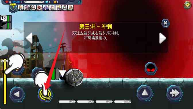 6、然后点击双击左箭头或右箭头来刺。冲刺需要耐力。