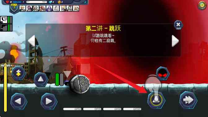 站在你的角度想... 5、点击图中箭头所指的按钮可以实现二段跳。