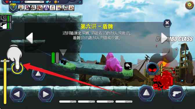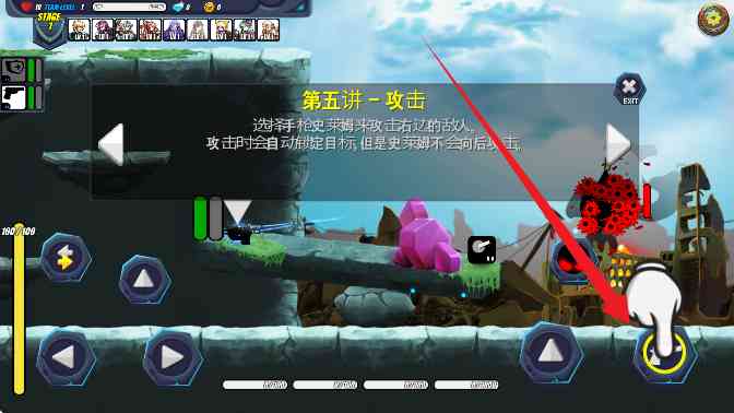 9、选择盾牌史莱姆。菲近右边的敌来击盾牌会击退敌并造成伤害,打脸。。