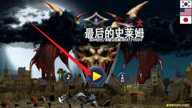 与君共勉。 2、进入到游戏开始界面如图所示,点击箭头所指的按钮开始游戏。