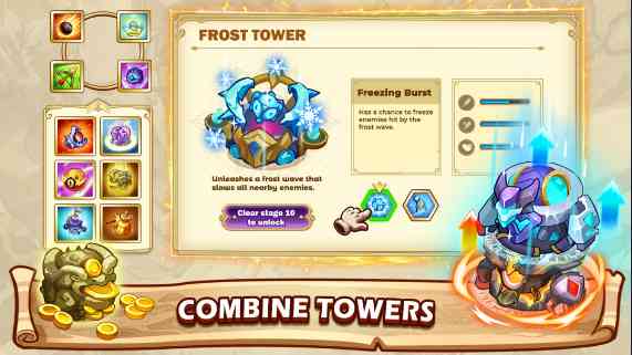 比如在狭窄路口, 放置火炮塔和冰霜塔,火炮塔负责输出, 说起来... 冰霜塔减速敌人,可有效阻止敌人前进。