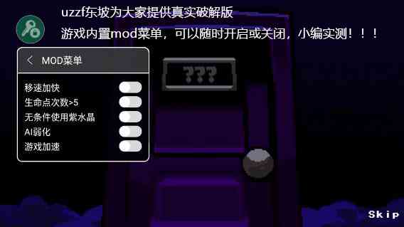 《超级黑暗欺骗》内置作弊菜单是一款集冒险、 解谜、恐怖于一体的手游。游戏中,玩家将扮演一名勇敢的探险者,深入暗黑世界,揭开隐藏在这个世界背后的秘密。内置作弊菜单的功能丰富, 包括付费解锁、移速加快、生命点次数大于5、无条件使用紫水晶、AI弱化、游戏加速等,让玩家在游戏中畅游无阻。