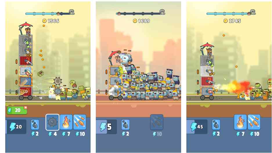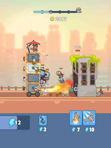 要建造塔楼, 你需要在旅行时收集不同的方块,然后将它们组装起来形成你的堡垒。在每个关卡中, 你都可以添加不同的武器,尽管有大量僵尸试图进来吃掉你的脑子, 我破防了。 但这些武器仍能帮助你保持平安并继续前行。小心,一旦你的防御被突破,你就死定了所以继续建造和移动!
