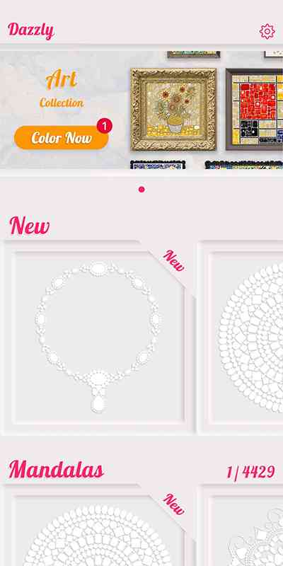 一款非常有创意的艺术类填色手游,游戏不但非常解压好玩,玩家还能在游戏中创造各种漂亮的物体和作品,你可以通过选择不同颜色和形状的宝石镶嵌到你喜欢的艺术品种,游戏非常考验玩家的审美和创意!