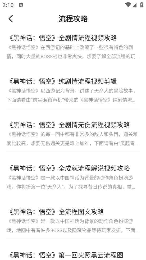 5、进入到新手指南,我们可以看到诸多关于《黑神话悟空》这款游戏的玩法,包括购买指南, 牛逼。 道具作用说明,跑图指南,战斗技巧,加点推荐等最佳的闯关流程,
