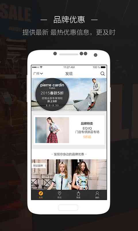 可不是吗! 2. 浏览品牌折扣:在首页, 您可以看到各大品牌的专享折扣信息,点击“发现”,查看更多优惠。