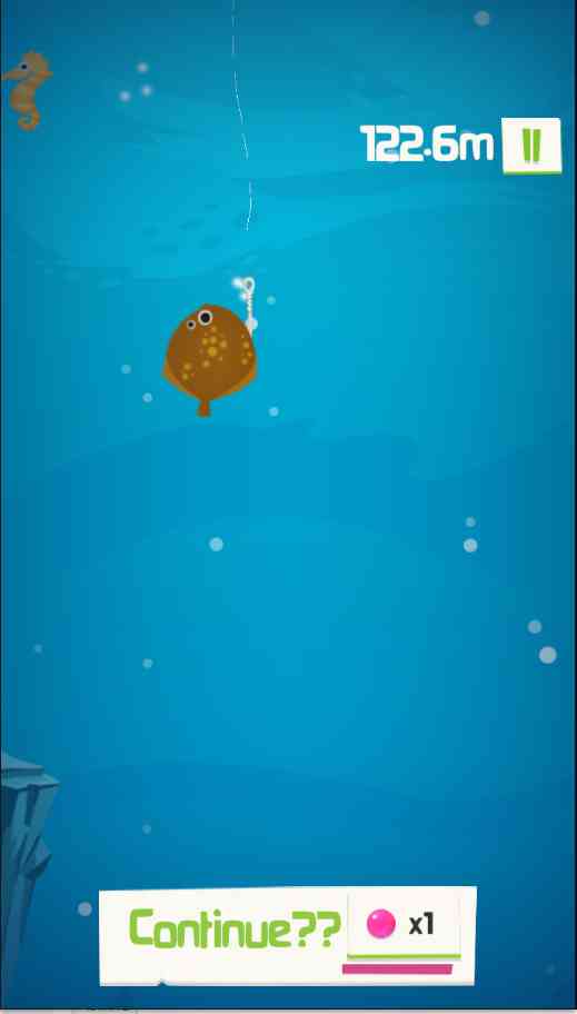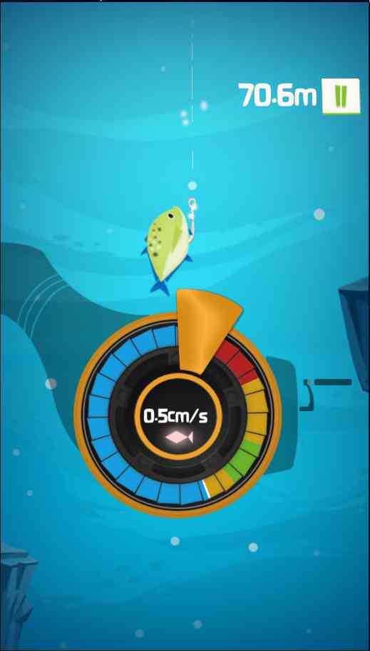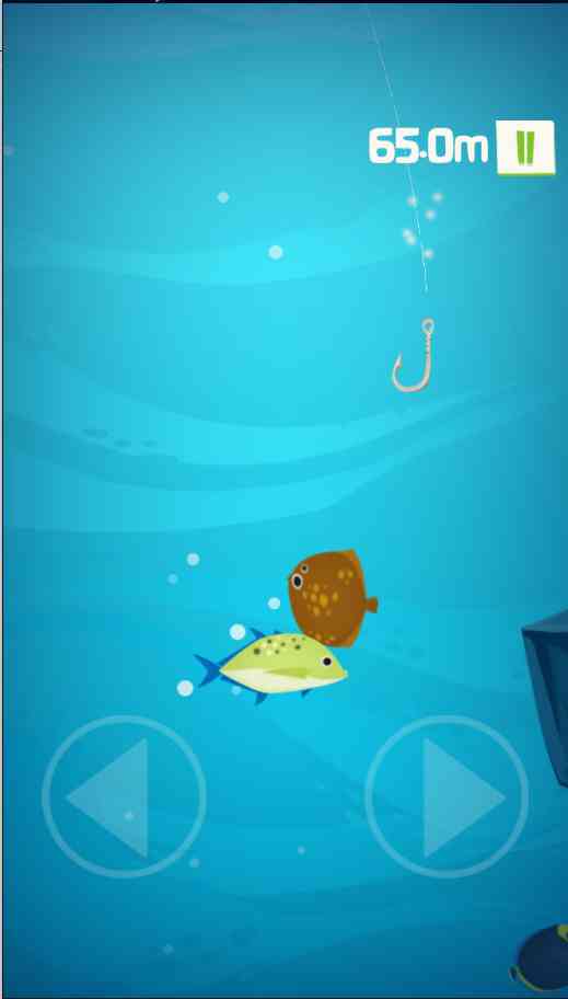 1、 点击左右键鱼钩分别向两边移动,感受精准的操控。