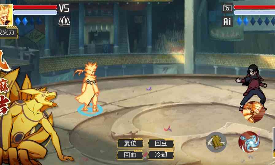 4、 之后玩家就可以选择自己和人机对应的角色、忍卷、通灵兽,也可以点击问号,进行随机选择,选择好点击开始即可。