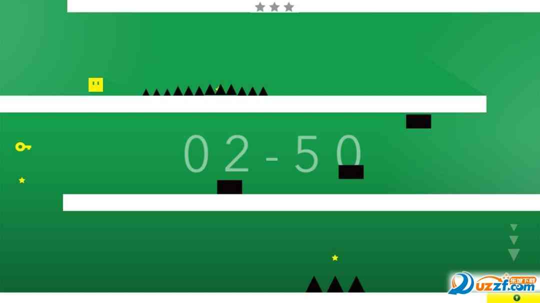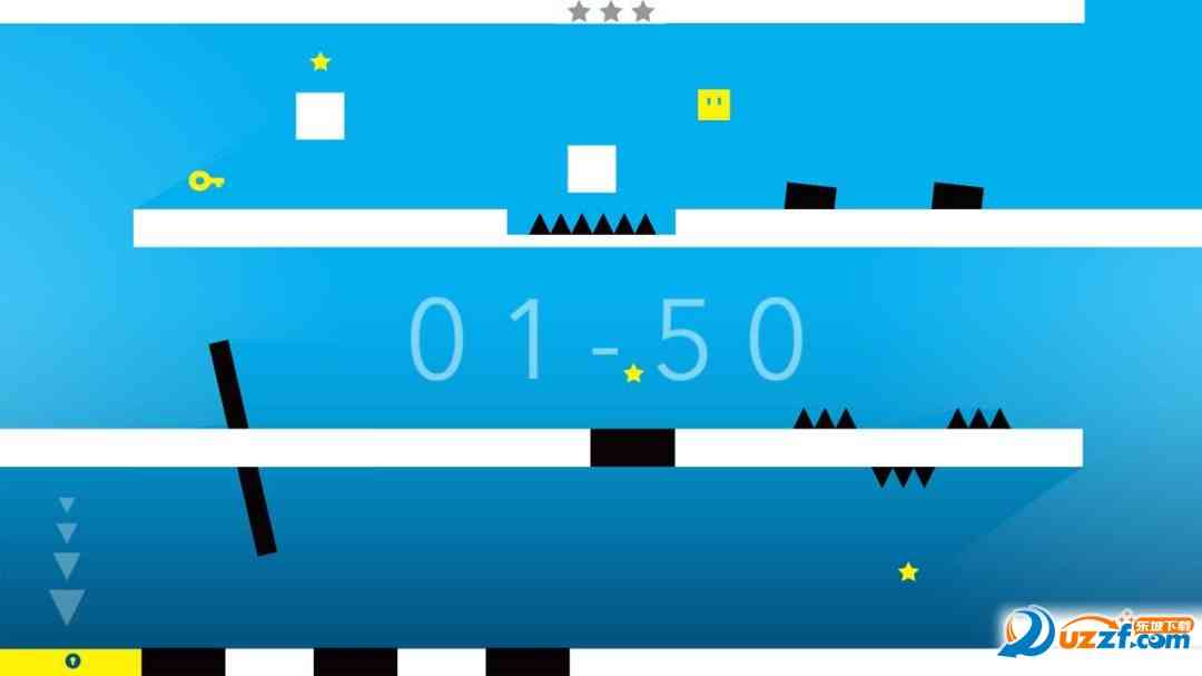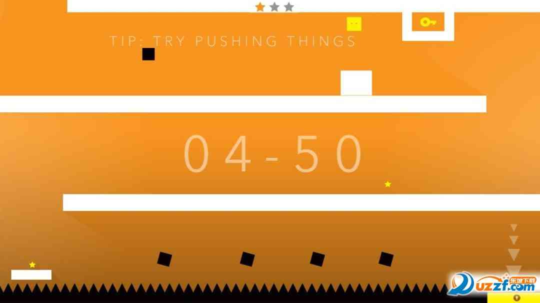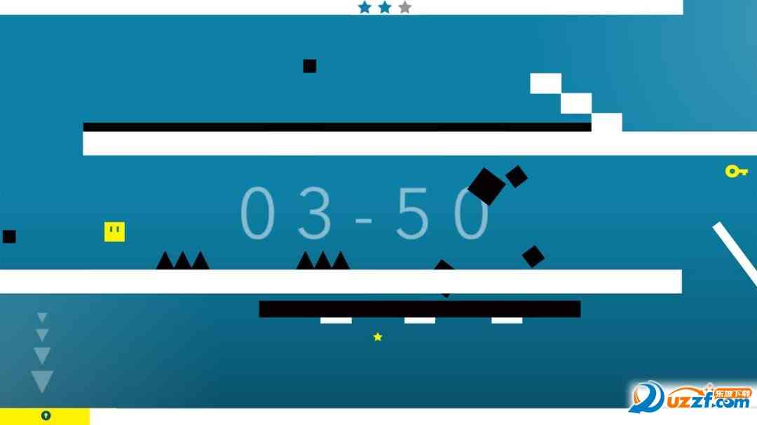 这款游戏的画面过于简洁, 大体上就采用的是大色块的模式,主题是以黑色于白色为主,白色的地方全部都是平安的位置,但是黑色就代表了死亡,一旦触碰到黑色的东西我们就必死无疑了哦。 功力不足。 小方块是黄色的而我们的星星以及钥匙都是黄色的,这就代表了生机,玩家必须要获得钥匙才能够顺利用通关哦。