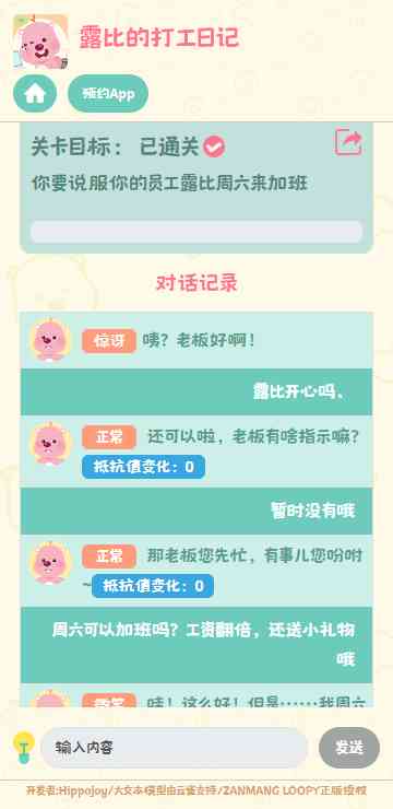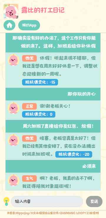 职场休闲游戏《露比的打工日记》目前有很多关卡小游戏, 游戏玩法模式有点像是AI对话,在这款游戏里面你将化身成为资本家老板, 到位。 对打工人露比进行对话,让它加班或者是做工作等等,平时身为打工人的你做了老板会怎么做呢?