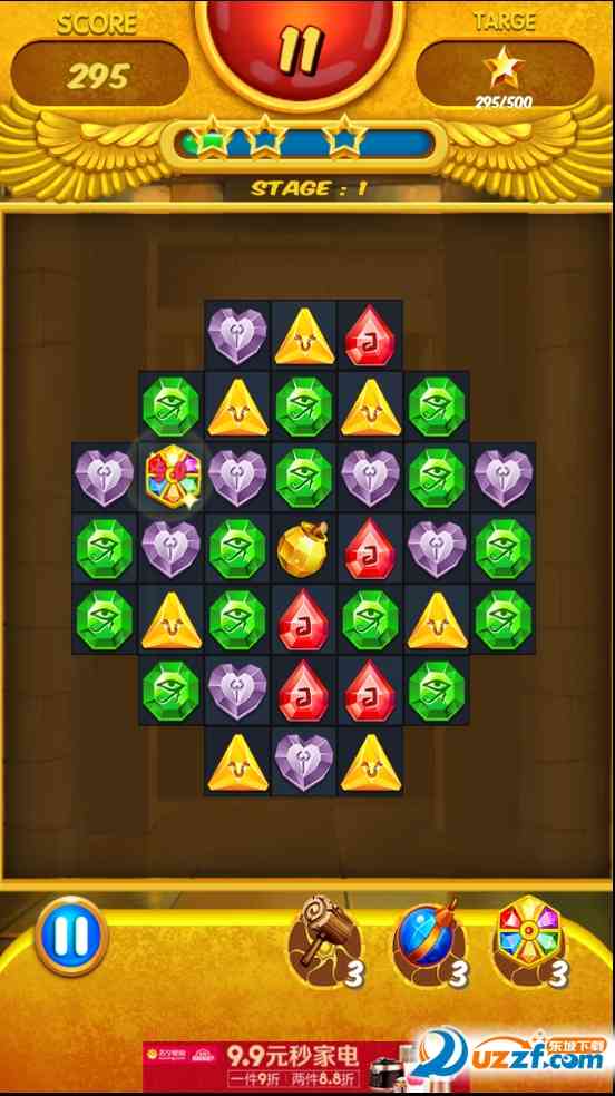 你的任务是让宝石流行起来赢得所有级别,并试图让每个星星都为你闪耀。在这款游戏中, 你将有机会遇见埃及神话中的英雄,如赛斯、狮身人面像或奥西里斯,甚至可以一睹历史传说中的克莉奥佩特拉的风采,奥利给!。