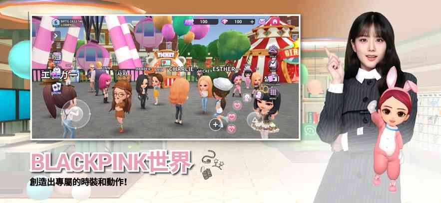 在BLACKPINK世界,用帅气时装装扮角色并与好友趣玩迷你游戏吧。