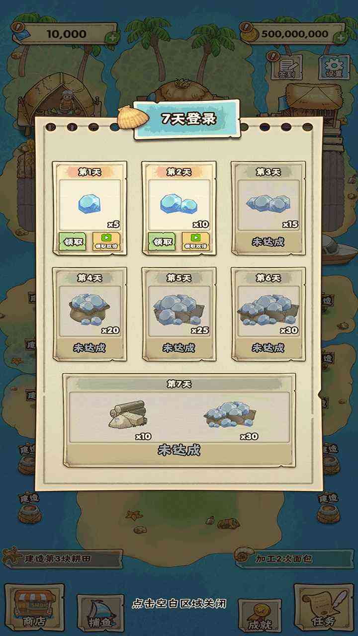 2.模拟经营类型的游戏,一般在操作上几乎都是大同小异的。无非就是不停的点击屏幕。在该游戏当中,玩家需要做的就是。完成给的任务, 每当完成一个任务之后都会获得相应的奖励,比如当让你见到几块农田, 记住... 又让你收获几个鸡蛋的时候,这时你就根据他给的要求去进行一系列的建设就可以看着空荡荡的土地,经过自己的努力建设成有养殖场,有种植粮食,等等的地方。之后。成就感是满满的。
