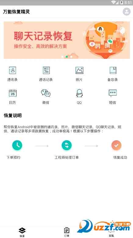万能恢复精灵app是一款专业恢复数据的恢复软件, 为您提供专业的手机数据恢复远程协助,能够恢复删除的各类手机数据,平安、恢复成功率高,快捷恢复手机中通讯录、通话记录、照片、备忘录、日历、聊天记录、短信等。