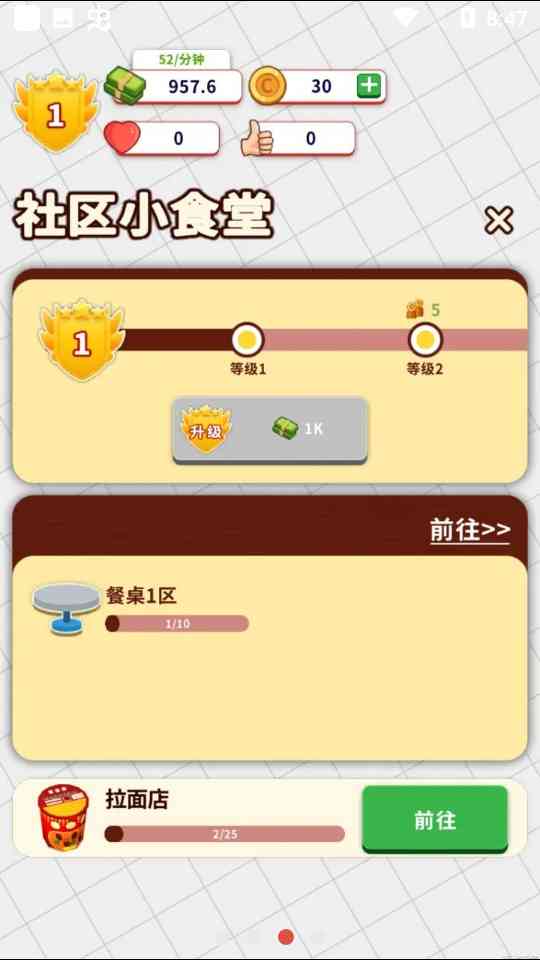 佛系。 小食堂游戏玩法 1.食谱收集与制作:游戏初期, 玩家可选择不同的食谱进行学习,因为游戏的进行,可以解锁更多美食食谱。每种美食都有详细的制作步骤,需要玩家按照步骤进行制作。 我始终觉得... 2.食材采购:玩家需要定期去市场购买食材。市场价格会随市场波动而变化,合理规划购买时间可以降低成本。 3.顾客服务:顾客进入食堂后玩家需要及时为他们点餐、上菜和收拾桌子。根据顾客的喜好和满意度,可以获得不同的评价和奖励。 4.食堂装修:因为游戏的进展, 玩家可以对食堂进行装修,提升食堂的档次和美观度,吸引更多顾客,好吧好吧...。 5.员工管理:游戏中会有员工加入,玩家需要合理分配工作,提高工作效率。 6.活动策划:玩家可以举办各种优惠活动,如打折、满减等,来吸引更多顾客。 小食堂游戏攻略 1.菜品搭配:合理安排菜单,提供多样化的美食以满足不同顾客的口味,太魔幻了。。 2.食材储备:保持适量的食材储备,以应对高峰期顾客的需求。 3.顾客满意度:关注顾客的满意度,及时调整服务质量和菜品口味。 4.市场动态:密切关注市场价格变化,抓住时机采购性价比高的食材。 5.装修与营销:适当的食堂装修和营销活动可以提升食堂的形象,吸引更多顾客。 6.员工培训:定期对员工进行培训,提高他们的技能和服务水平。 用户点评 1.昨天晚上八点多进的游戏, 没玩多久就发现了看广告招募厨师没有效果,白看广告了 2.右上角看广告的双倍点餐还是什么速度,我看了一次每分钟的收益还减少了 3.每次出新店,收益好像会暴涨一些,不过你在升级它,暴涨就没了收益会减少 4.这个bug就离谱了昨天晚上玩到12点,第二天了我发现了这每日签到可以无限点击,你只要不退出这个界面他就能无限点击当天的奖励,退出这个每日签到界面再进,就是下一日的奖励,还是可以无限点击,我直接刷了半个点以上,精英招募刷了2000多,金币刷了500k,50倍五分钟收益刷了2000多,然后就是嘎嘎升级,一点钟睡的觉 5.早上七点半起的床,进了游戏看一下每日签到无限点击这个bug还在除此之外我又发现了一个bug,那个转盘抽奖也可以无限抽,抽一次退出了再进去还是4次机会,每进一次页面抽一次退出再进再抽一次可以不看广告无限刷, 复盘一下。 可以抽一下攒和红心,那个赞是真抽不出来我抽到了两次500招募,没抽到一次50赞的,八点左右的时候,这个bug和每日签到的那个bug就没了 6.这再说说一个bug最离谱,我好像升到了16级,又能开个新店了前面说了开新店会暴涨一下收益,我就没去升级它,我是退出游戏重进,后来啊我一退出,再重进游戏数据没了重新开始新手教程,卸了游戏再下载也不行,数据彻底没了,蚌埠住了! 7.数据分析:定期查看经营数据,了解哪些菜品受欢迎,哪些需要改进。 通过不断优化经营策略和提升服务质量,玩家可以在《小食堂》中体验到经营美食食堂的乐趣。希望这些介绍和攻略对玩家有所帮助。